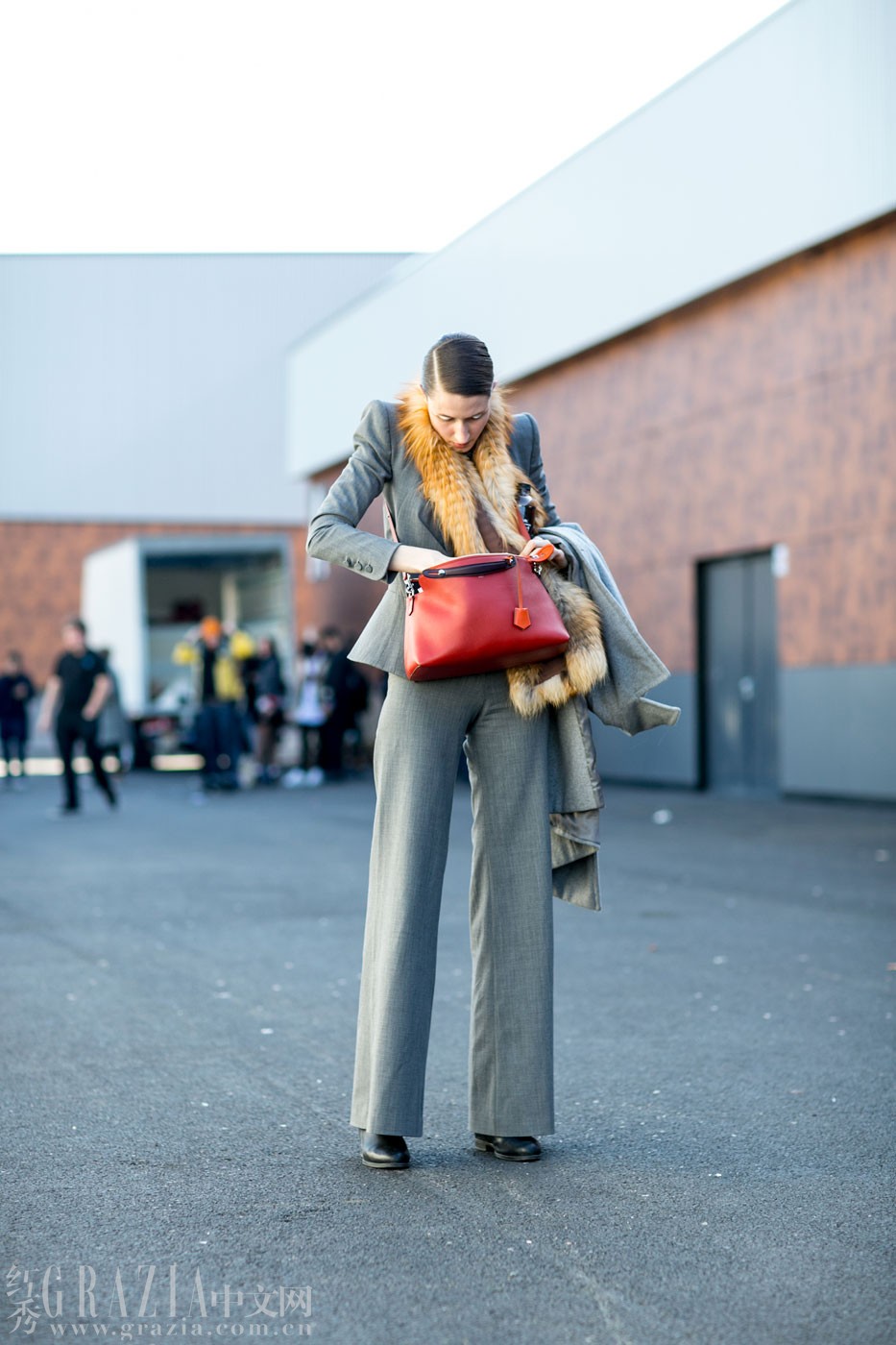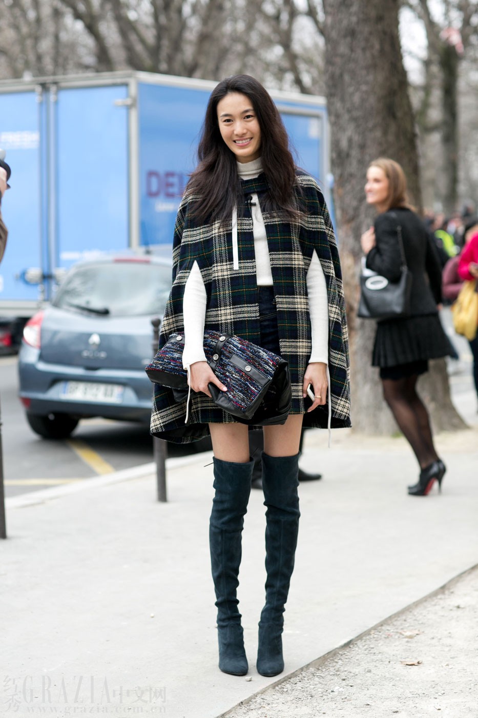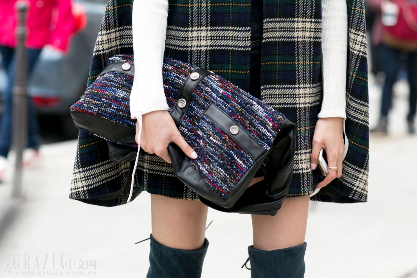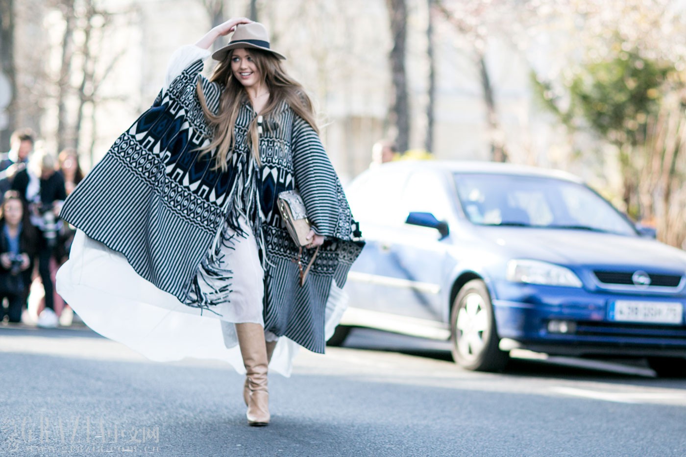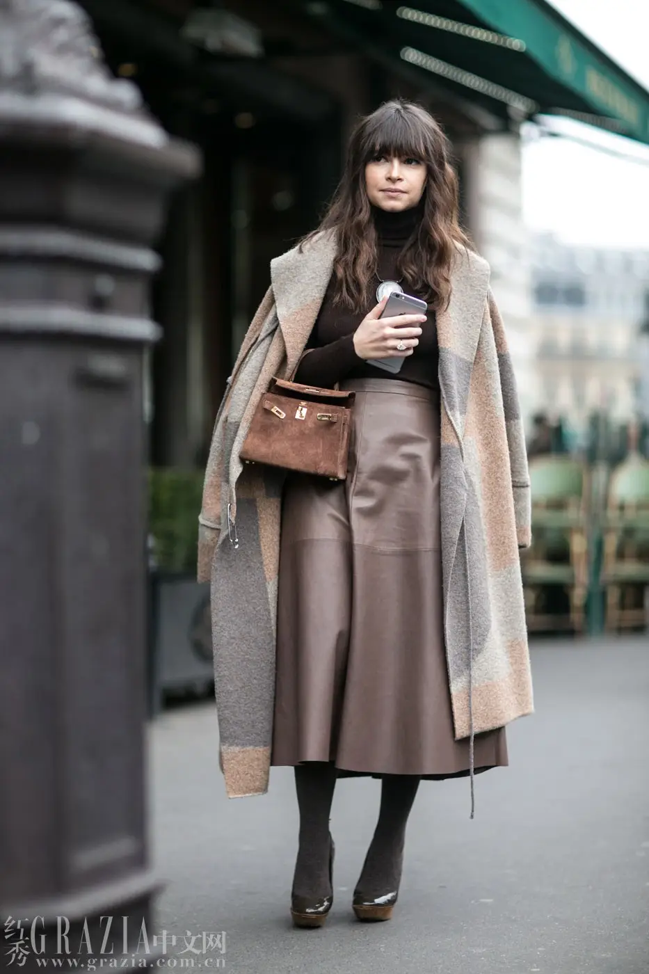 秘诀:斗篷外套既实用又能为整体增添吸睛指数,若想把斗篷穿的时髦又优雅,那么拿包的方式必须一折二手拿。