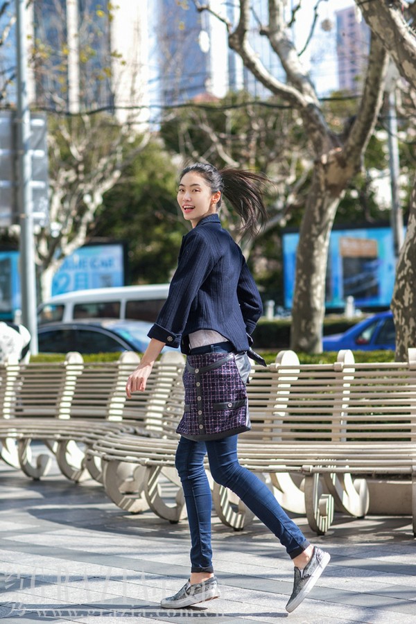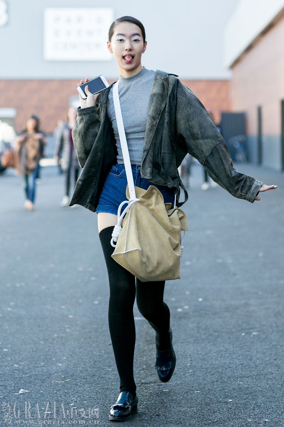 秘诀:除了中性,春春的魅力还在于潇洒。看她把斜背包甩在身后的背法,不论谁都会被她那股不拘一格的气质吸引。