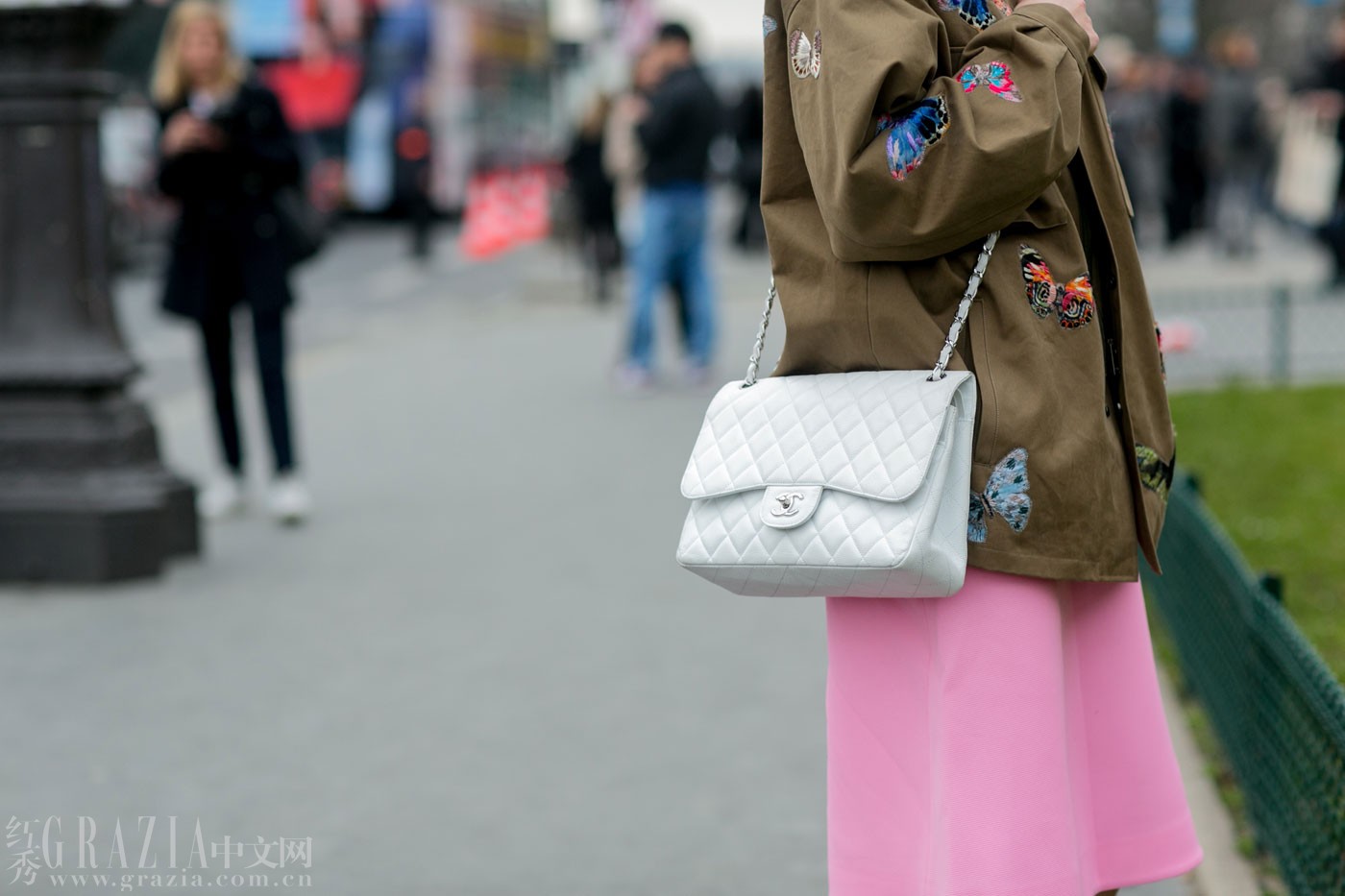 接下来带大家一起来翻翻时装周期间那些适合春日的造型街拍,看看时尚人士都是怎么背包的: