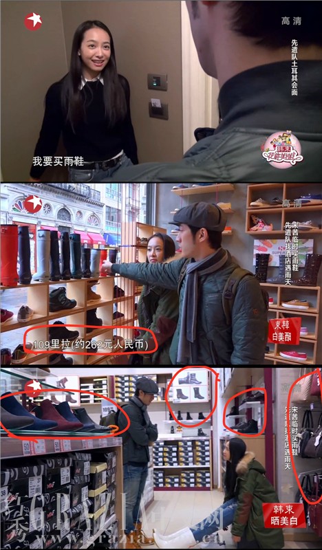 马天宇都背着姐姐上楼了,远在土耳其的李治廷一样逃不过编导的魔抓。在土耳其,发生了宋茜硬拉着李治廷买雨鞋的一幕。李治廷和宋茜开始出去找酒店时,路上宋茜惊呼:啊,我的鞋脏了(演技略浮夸),然后拉着李治廷买雨鞋,宋茜要买贵的,李治廷要节约钱买便宜的,扯了一大段,最后……啥也没买走了。