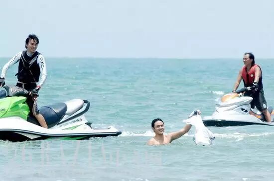 阮经天带领“赏茎团”(这名字也是醉了)来到三芝浅水湾,脱去上衣、只穿游泳裤下海,并在海里脱去泳裤游了一会,穿上泳裤后才上的岸。海里的鱼儿,你过来,我们谈一谈……