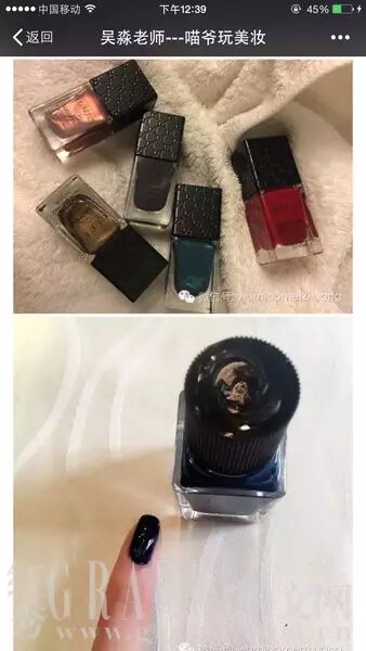 GUCCI的指甲油是绝对不能错过的。为什么?真好用!这个产品无论从颜色还是质地还是饱和度还是什么什么什么的都特别好!最特别的是刷头,其他指甲油刷子的刷毛每根基本都是圆型的,而GUCCI的指甲油的刷毛每根都是三角形的,你们懂啥意思么?每根刷毛都是三角形啊三角形,这样就能保证刷毛在指甲上行程面与面的贴合,而不会像有些指甲油的刷毛是圆形的而分叉行程不均匀。(难得意大利人肯动脑子发明这个,然后美滋滋的申请专利去了)你们看第一张图是他们15年的新品颜色,一遍的颜色就能这样很牛了!
