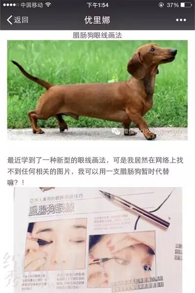 腊肠狗眼线画法:首先,按平时的步骤画好内眼线。勾勒完眼线后,在眼头画出三角形,在睁眼的时候刚好可以看见的地方。接着用眼线笔或眼线液在眼尾的重点描绘上下引号形状的线条,大约两到三毫米然后填满这个线与眼际之间的空隙。就完成啦!