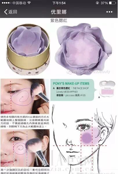 日本最近流行紫色腮红。紫色真的能当腮红吗?答案是能,而且居然很显白。之前只听说过紫红色腮红,现在就直接来紫色的了。紫色腮红并没有想象中的夸张,相反,用紫色做腮红有非常奇特的显白效果,而且,比用粉色做腮红感觉更加清新甜美。很多品牌也有推出紫色的腮红,比如,MAC,Marc Jacobs都有出单独紫色的腮红。另外很多大牌推出的所色腮红也会夹杂着紫色,所以紫色腮红必定是今年潮流所驱。(完)