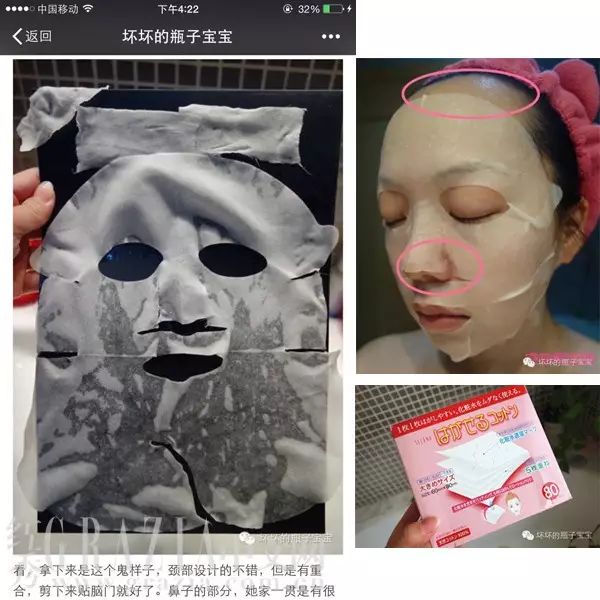 瓶宝真是个好玩的妹子,分享她的小白鼠经验也是不留余力的,这两天她的尴尬和我产生了极大的共鸣,不是我们的脸太大,而是别人的脸太小……“买到不合适脸部规格的面贴膜怎么办?”这些额头、鼻翼、侧脸的空缺其实是可以填补的。