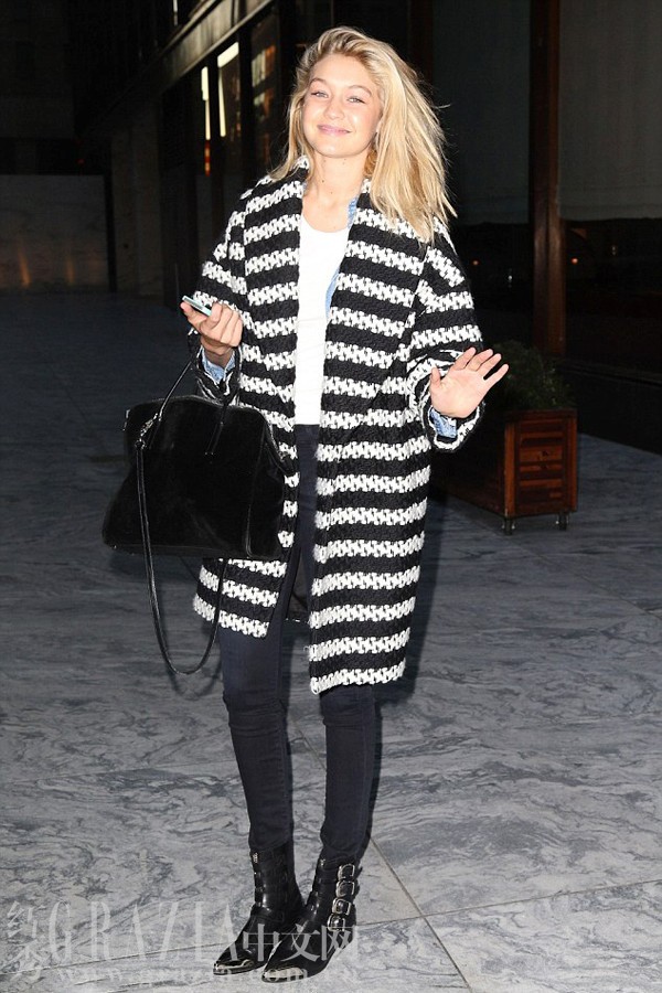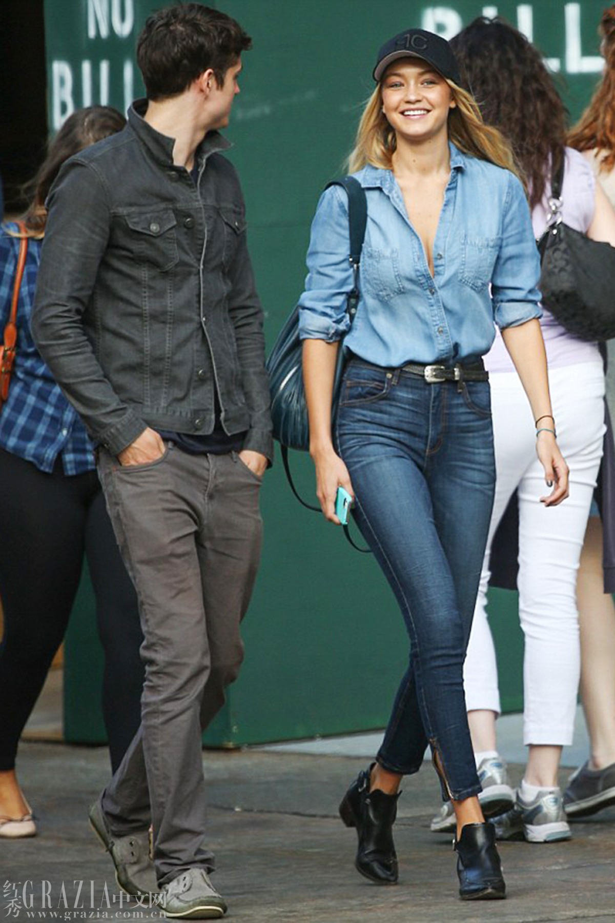 图:吉吉·哈迪德紧身牛仔裤街拍
