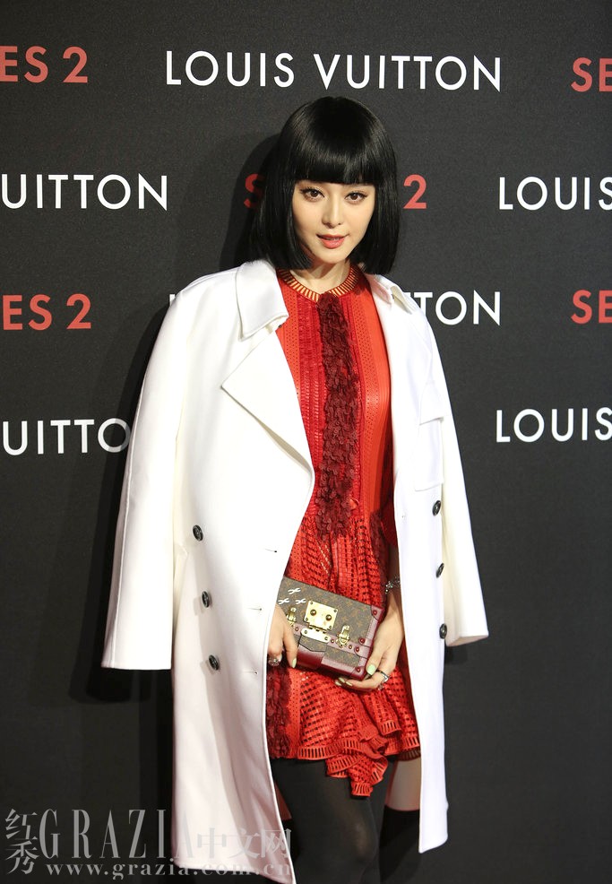 准备出席满都是女星(特别还有张曼玉在场)的派对时,范冰冰选择了用颜色和发型来突出自己。鲜红色的连衣裙搭配一件披肩穿法的白色外套,不仅在色彩的对比上获胜,还完美隐藏了自己的手臂粗细。