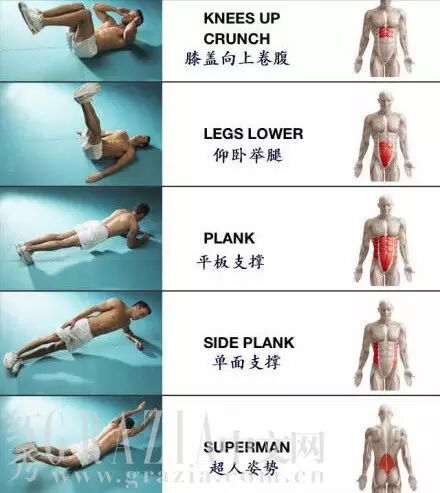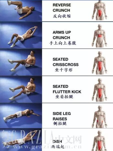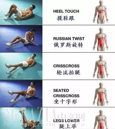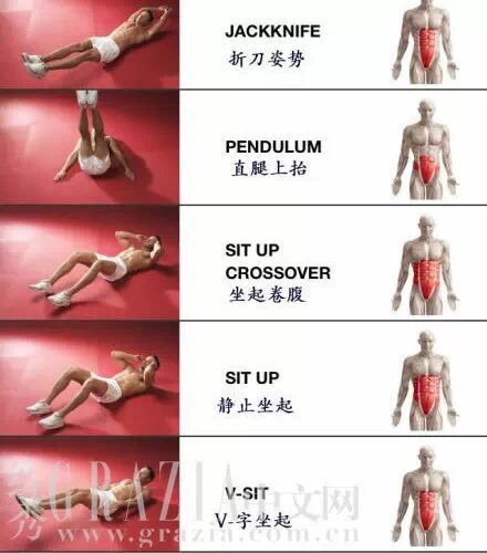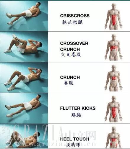 在此红秀中文网为你列举了最全的针对腹部这三根线的运动,但是这次我们要告诉你的不是这些你耳熟能详的动作怎么做,而是告诉你,这些动作究竟都锻炼到了你哪部分的肌肉。