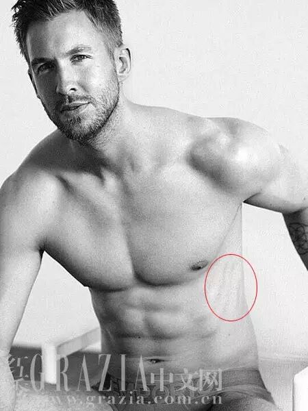 在胸下体腔两侧练出来的3条线,看起来就像鲨鱼两侧的鳃,在胸部跟腹肌连接的部位,学名叫做前锯肌,它的外号叫做鲨鱼线。Calvin Harris的鲨鱼线非常明显,看起来腹部线条就非常完美。