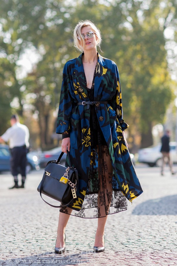 用腰带束住一件漂亮的印花外套,完全可以让想穿蕾丝连衣裙的MM们放心大胆地尝试。