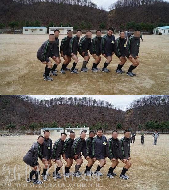 日前,神童所在部队的官方网络社区公开了其在部队的生活照,照片中,神童和战友们集体下衣失踪,一起把外套拉长盖到大腿处,并摆出了十分娇羞的动作,真是非常搞笑!看来很享受部队生活哟,神童确定你是去当兵而不是去拍《炊事班的故事》的吗?