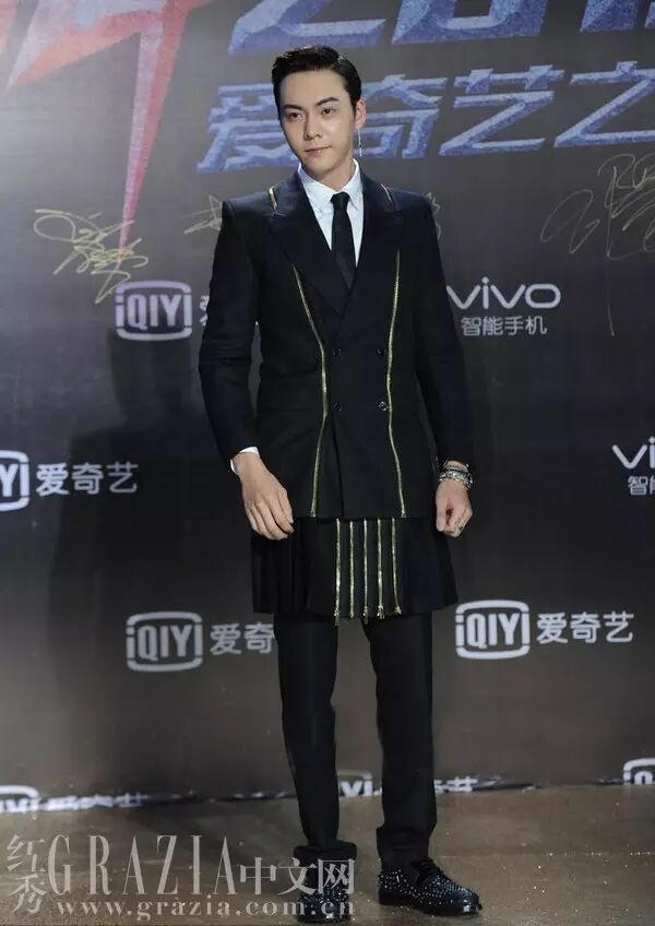 陈伟霆这身的重点不在设计感爆棚的西装,而是,他居然单耳带了一只7公分的耳环!