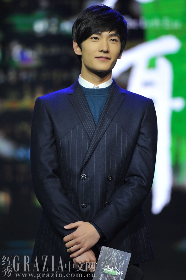 穿上竖条纹西装的杨洋与其说是霸道总裁,不如说是知书达理的公子。
