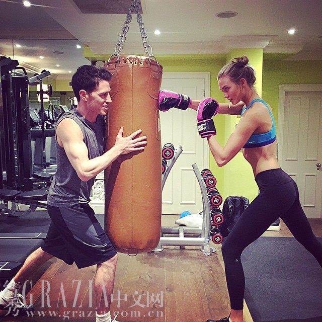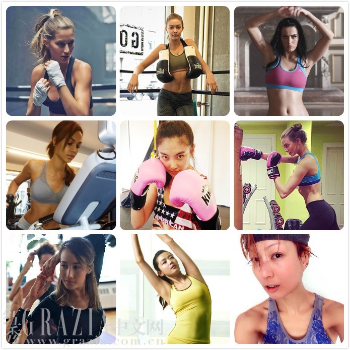 一件色彩亮丽的紧身运动背心,是超模们进行运动的必备品。显身材哟~