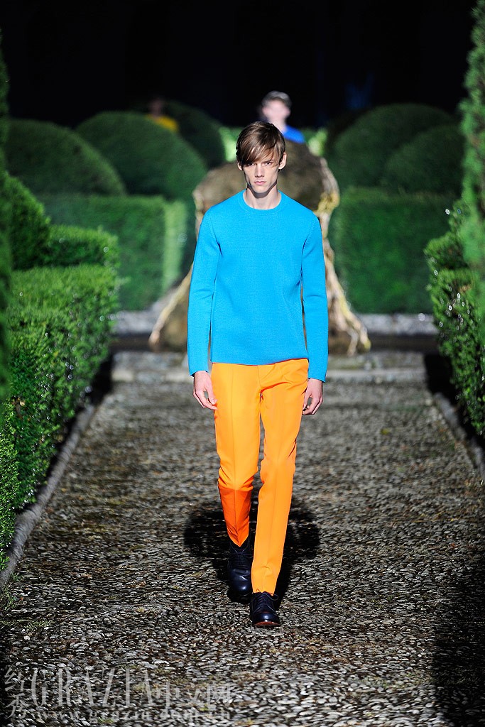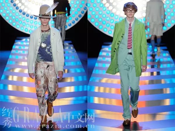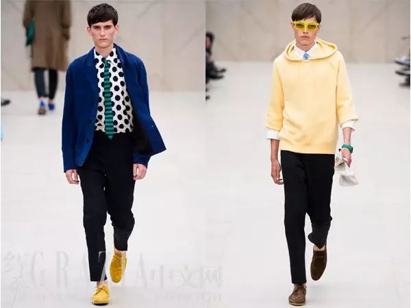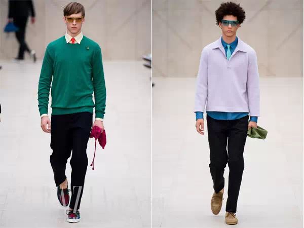 表达一次敬意不够,克里斯托弗·贝利 (Christopher Bailey)在2014年春夏男装系列中又再表达了一次敬意。这次还加入了针织毛衣的款式和波点,活脱脱就是为大卫·霍克尼(David Hockney)量身打造的衣橱。
