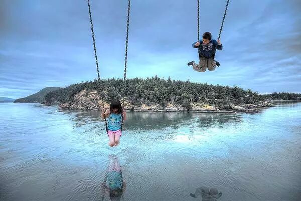 ! 透视关系不真实是指男孩与他的倒影,如果这幅图没有男孩以及他的倒影的话,真的是P得很好的一幅图。