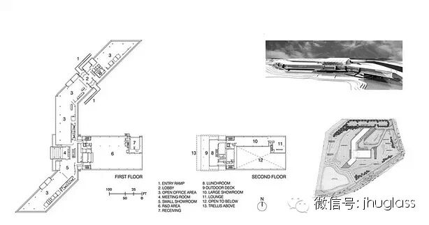 东边是公共交通走道,界定了半透明的核心区,西边是面向湿地的开放办公区。所有的私人办公室和会议室都是透明玻璃或半透明的U型玻璃,以使视线通畅,第二层是玻璃的午餐厅、户外木板台和阳台。http://mmbiz.qpic.cn/mmbiz/YbsDr9xg8bRd6DY2JZzib1qqSd86THbTR15zfdqNSUF6RwMDTgDF3rAibSNYVoWnucDWZkwIJx6xPdVGsTWngMnQ/0+