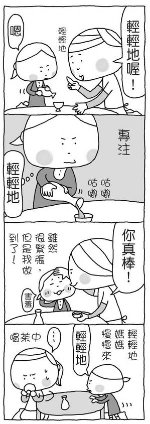 相反的,如果对方大喊:“不要打翻了!”你可能会吓得手忙脚乱打翻杯子。孩子也是一样。如果你对孩子说“轻轻地”,天真无邪的孩子就会照你所说的,慢慢、小心地倒水。把“轻轻地”这句话彻底传达给孩子,比“不要打翻”有更好的效果。因为它会成为“轻轻地就能做到”的正面暗示。