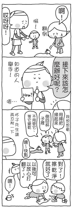 有一天,侬侬又打翻牛奶时,我的处理方式如下: