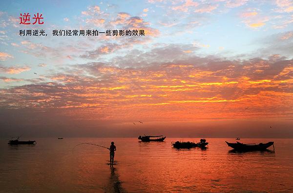这边说的光线是指拍摄对象所受的光线,比如太阳直接对着你照射这叫顺光,背向你照射这叫逆光,还有测光,侧逆光,侧顺光