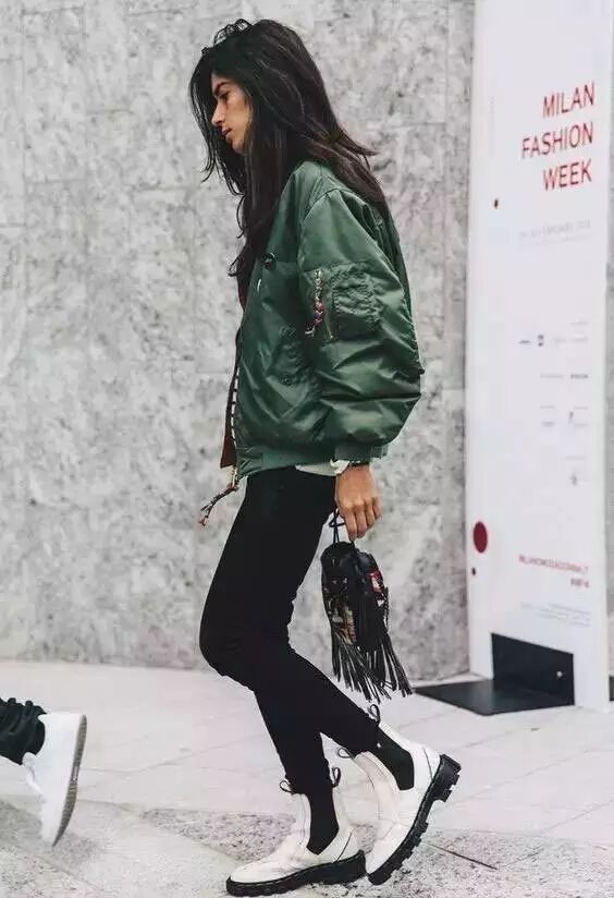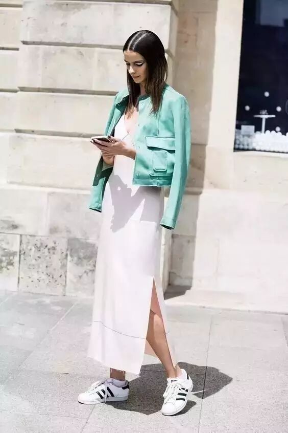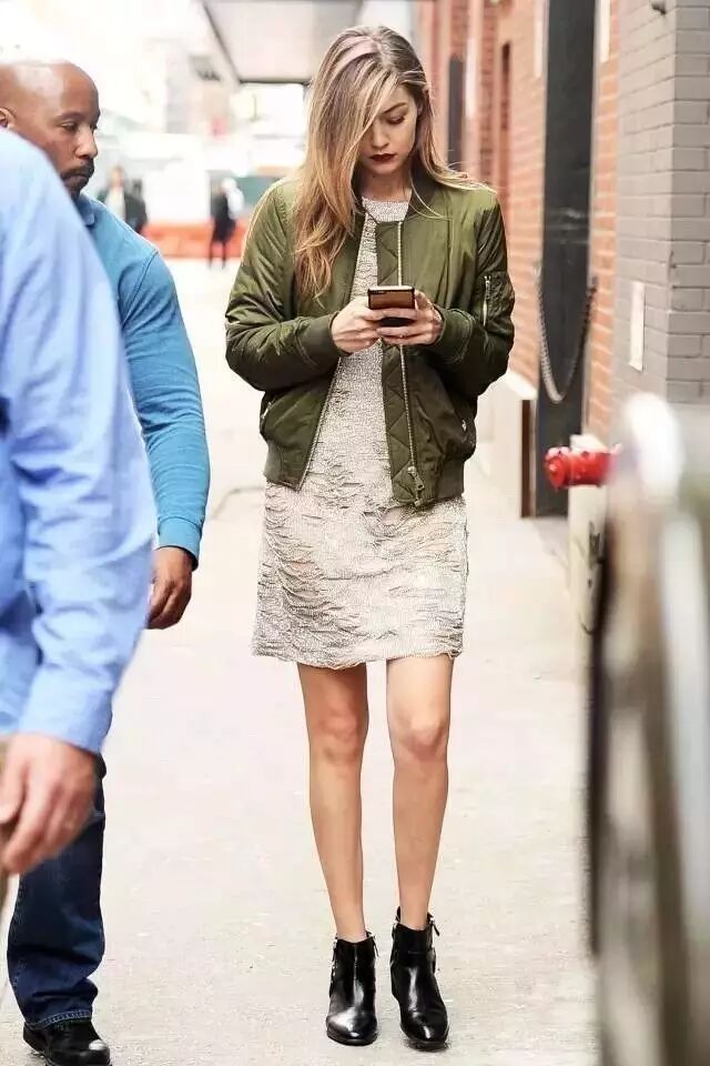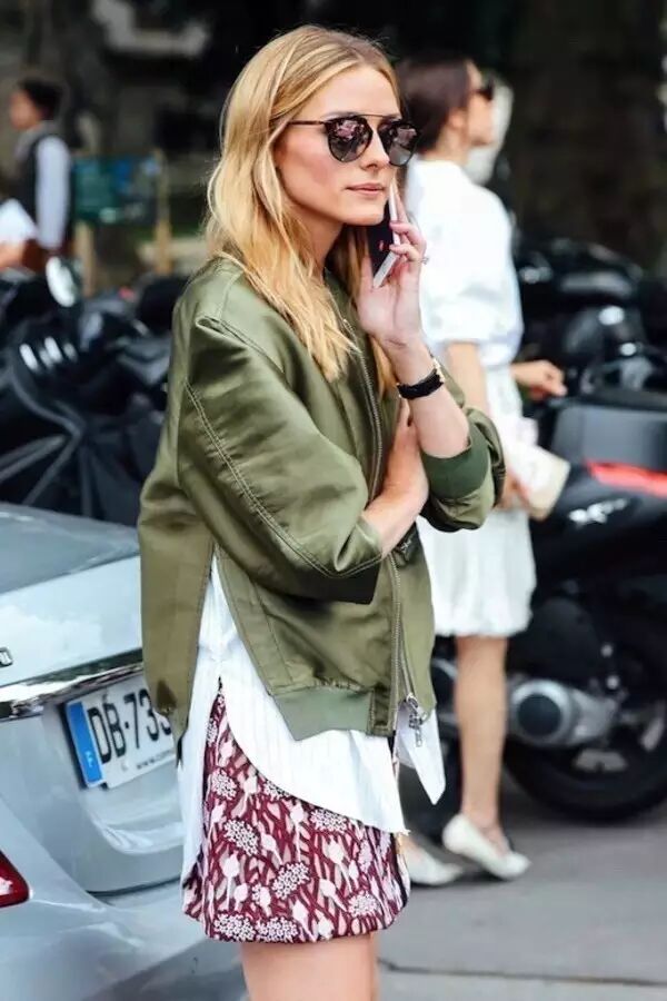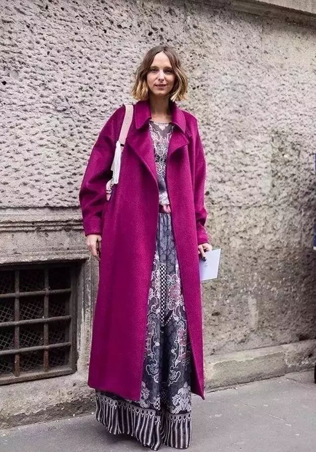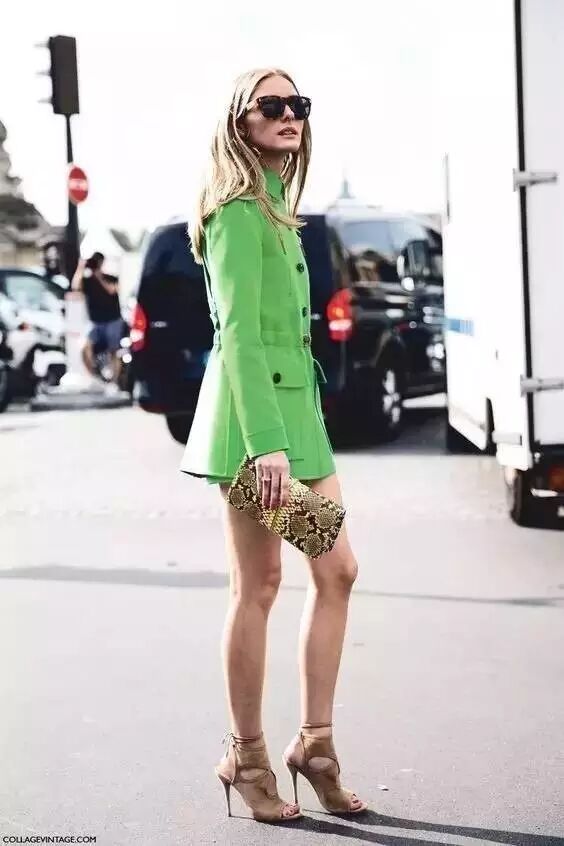 羽衣甘蓝绿外套搭配裤装可以非常帅气拉风,搭配裙装又可以刚柔并济的很好▼