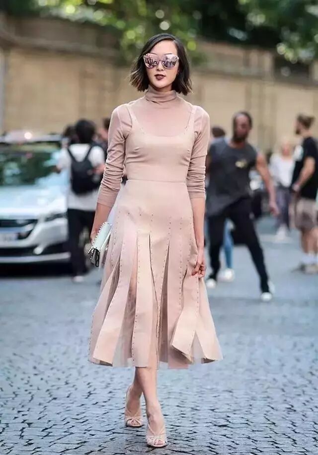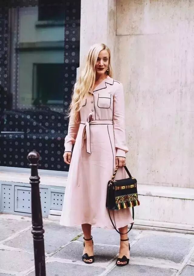 无论是上衣还是裙装,淡山茱萸粉都让你拥有满满的少女感。不过说句实话,这个颜色对身材的要求比较高▼