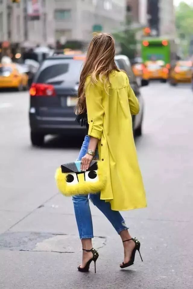 这种耀眼的颜色可以让你看出去神采奕奕,气色都可以好一大截,如果怕衣服不好诠释,也可以从包包和饰品尝试起来▼