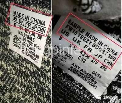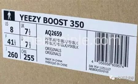 四、查看阿迪达斯Yeezy椰子鞋的鞋标和鞋盒包装等