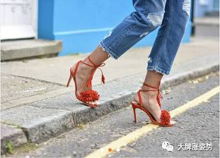 AQUAZZURA的流苏绑带鞋也是一直横扫ins和各大街拍网站,一字带部分和绑带部分的流苏很有特点,让人过目不忘。
