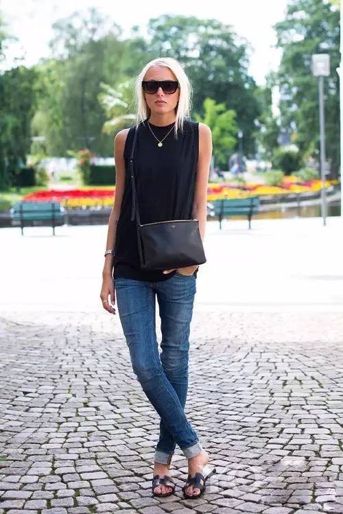 拖鞋 牛仔长裤
