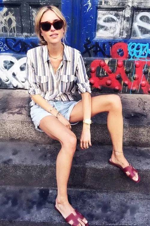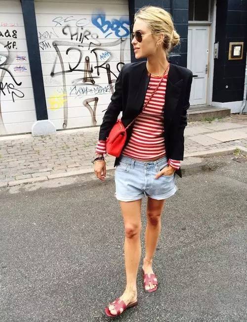 夏季出街率最高的短裤搭配拖鞋,酷劲十足慵懒洒脱的感觉一穿既有。如果觉得有些单调,那就再戴副墨镜试试,凹造型的必备利器想不抢眼都难了。