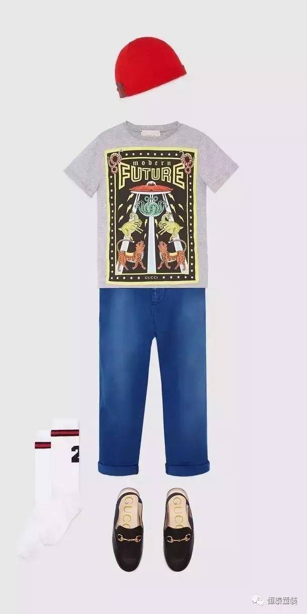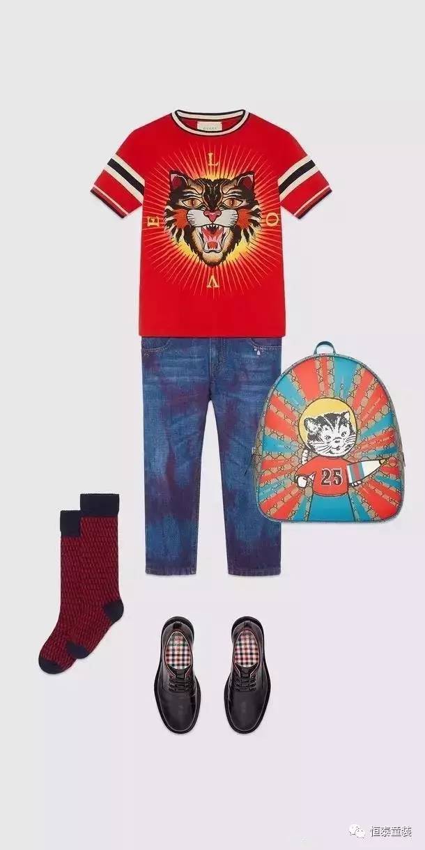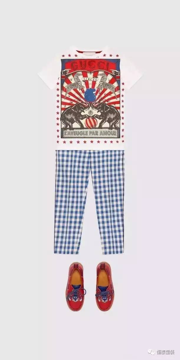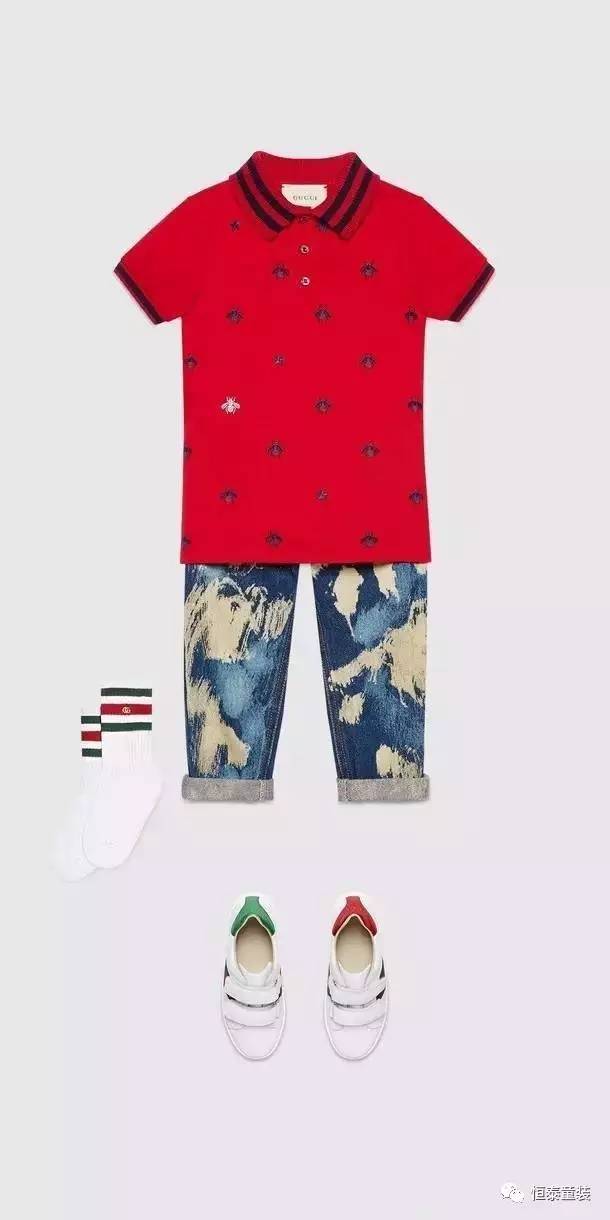 Gucci2017男童系列还推出了适合作内搭的polo衫、图案T恤和衬衫,以及洗水效果独特的牛仔裤,格子元素的设计也带出了些许复古优雅气质,非常吸睛!