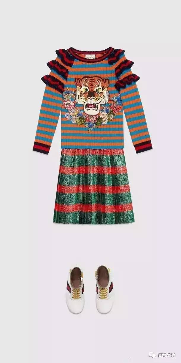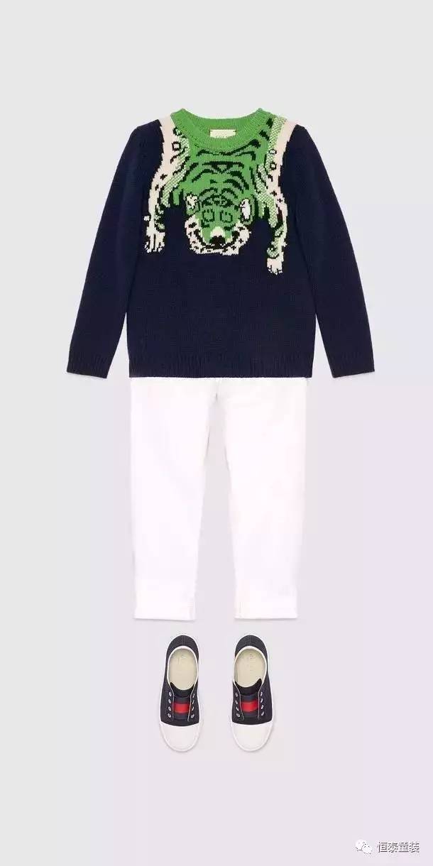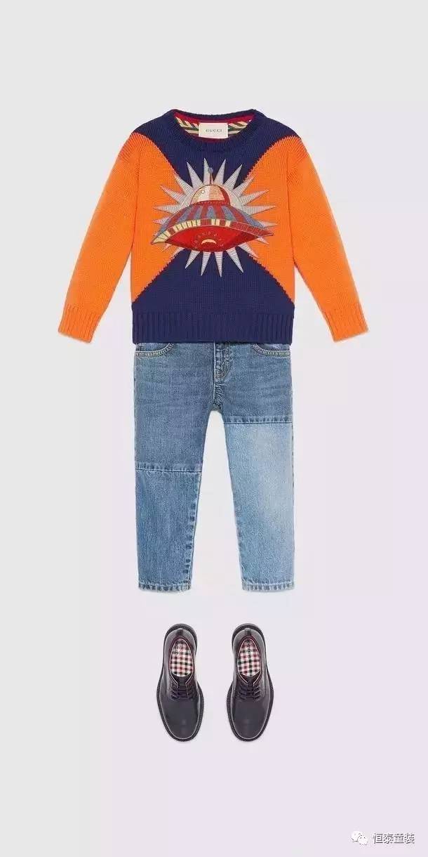 暖和的毛衣有着标志性的老虎图案,不同的图案表现形式尽显张扬和自信,在颜色方面依旧大胆,带来丰富的视觉效果。在2017冬季系列中,Gucci童装还假如了“UFO”和星体图案元素,让穿上它的孩子们也能感受探索星空的神奇和勇气。