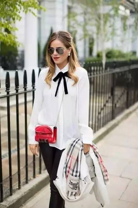 蝴蝶结作为这件纯白衬衫的主要装饰,做成夸张的大蝴蝶结把整个人包装的甜美动人。一点也不会让人觉得你扎了个蝴蝶结是在装嫩,反而女人味十足。