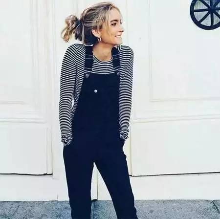 背带裤显小这件事应该是很多人都知道的扮嫩秘诀了,如果觉得背带裤太假小子了,搭配荷叶边上衣绝对是最佳选择,其实只要一点点girly的元素就能让你的背带裤look娇气起来。
