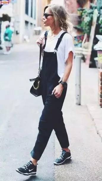 背带裤搭配白T恤,无论男女,一穿上身秒回18岁,甜美帅气两不误!