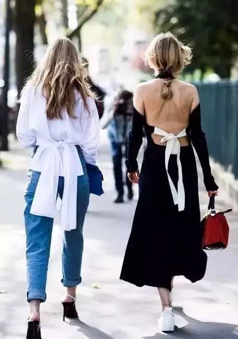 很多妹纸都喜欢这样搭配,穿个衬衫,系个蝴蝶结吧!