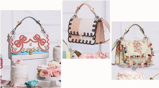 FENDI Kan I手袋系列的灵感源自法国凡尔赛宫的装饰主义风格,以及玛丽皇后洛可可风格的寝宫和后花园细腻华丽的装饰、马卡龙的色彩、花卉的刺绣,撩拨着每一颗萌动的少女心,让人不禁闭目许愿,轻问一声:Kan I wish ?