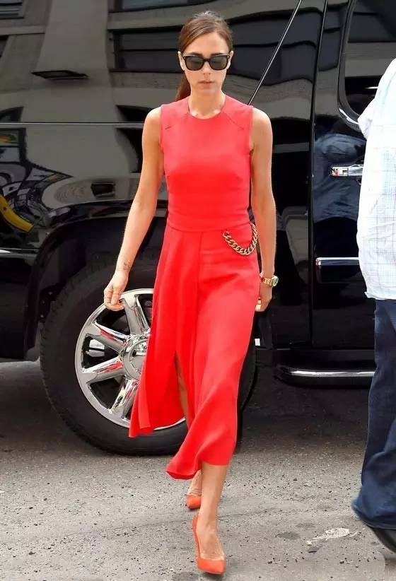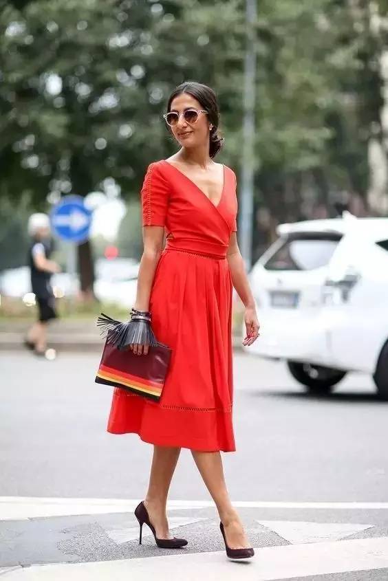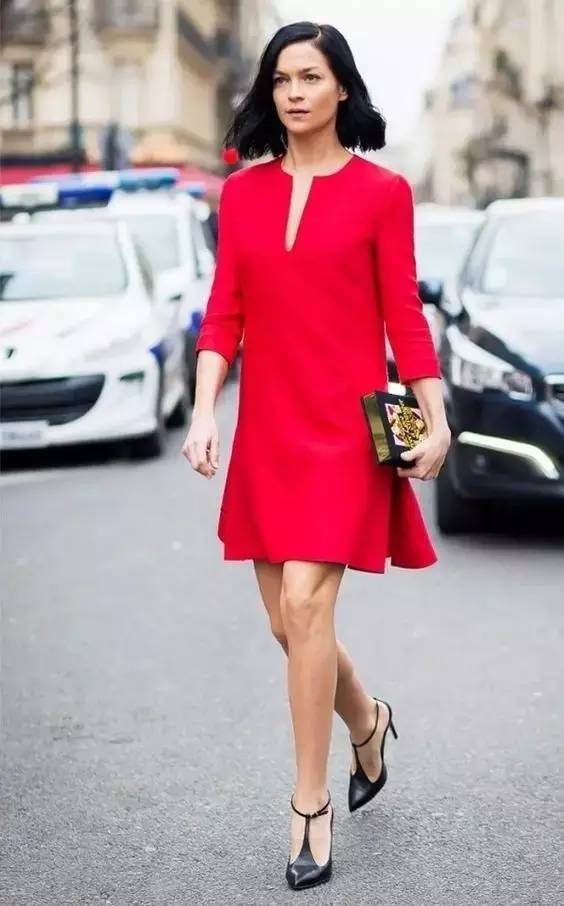 红色连衣裙总会有一种不可言说的气质,不像黑色给人带来的神秘那么直接,但似乎穿上它,就会更加凸显个人魅力,搭配一双高跟鞋还会更拉高身形,而且还更显白。