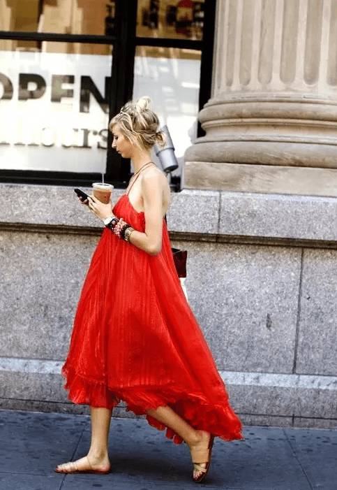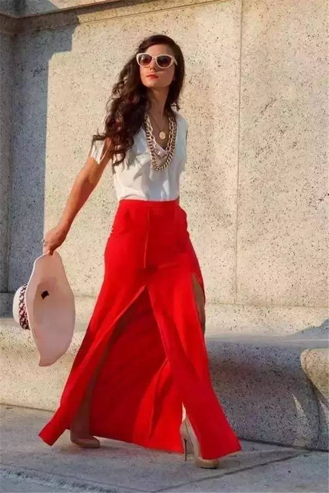 一抹流动的红色飘逸在你的脚踝上是什么感觉,我想只有一件红色长裙可以告诉你。搭配一双优雅的高跟鞋或者是平底鞋,只要你喜欢都ok。