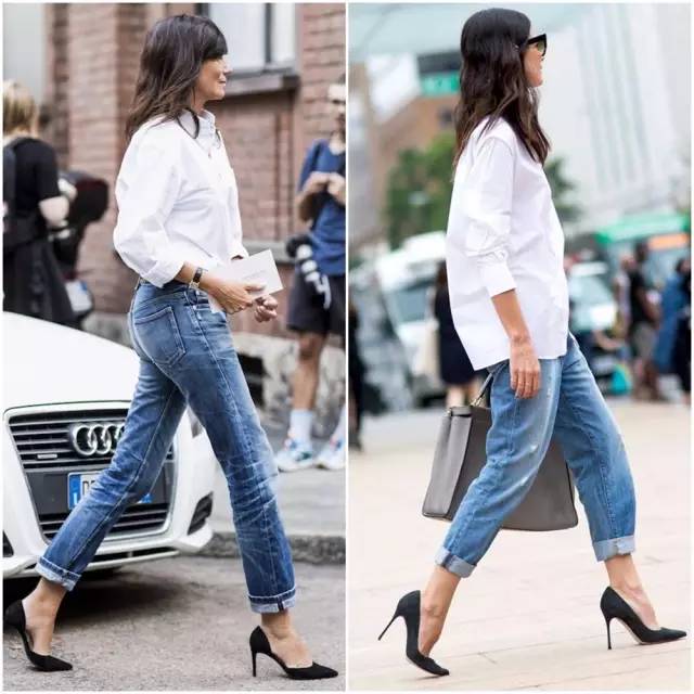 比如时尚编辑Emmanuelle Alt和时尚总监Leila Yavari的oversized白衬衣 mom jeans……