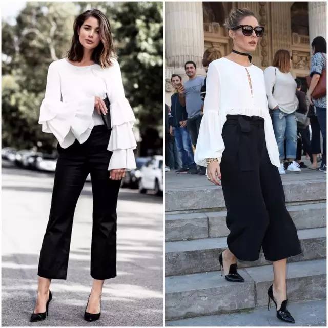 可以选择一件有设计感的单品,比如时髦的大袖子衬衣,让平凡上班裤焕发生机。