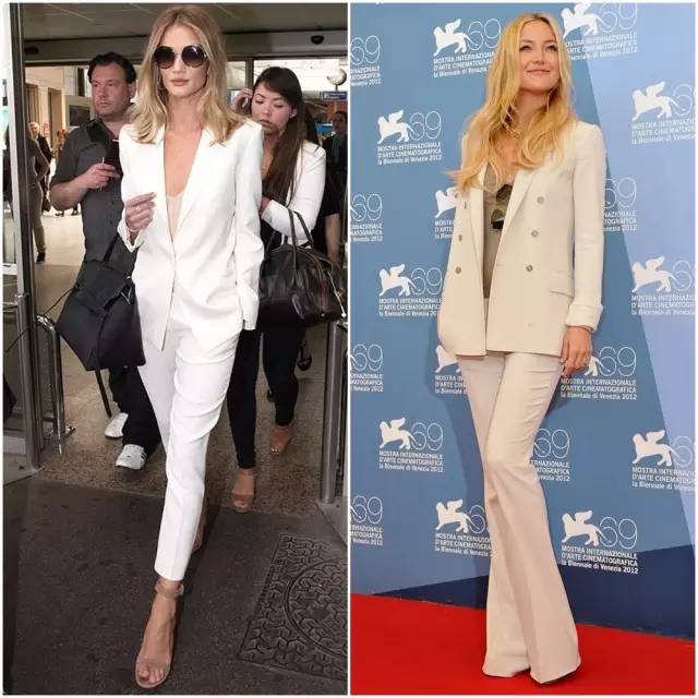 白色西装套装真的很实用,只需要像Rosie妹子和Kate Hudson一样,里面来一件裸色内搭。
