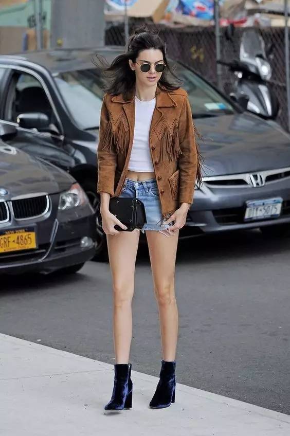 皮夹克 牛仔短裤是雅痞大女人最爱的出街行头,硬朗的皮质和不羁的牛仔碰撞出无与伦比的帅气。▼