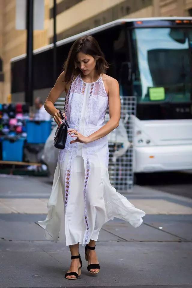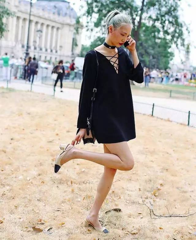 搭配黑色小洋装经典也可以轻松驾驭,看时髦人玩转下装失 踪的穿法,大秀美腿。