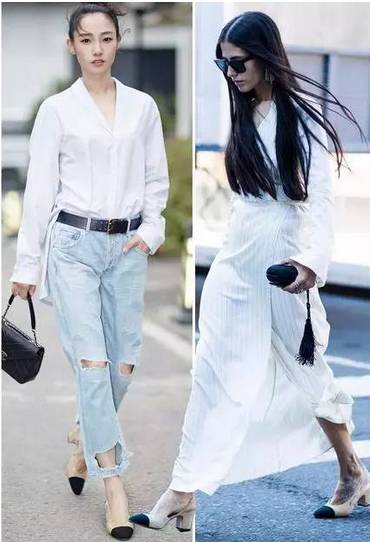 从上个世纪至今,黑、肤色亮色拼接和尖头的设计在视觉上大大的起到了拉长腿部线条的视觉感,后跟用一根带子固定简单大方,要说经 典,这款方跟鞋就是方跟中的经 典,明 星、时 尚 达 人更是爱不惜手。