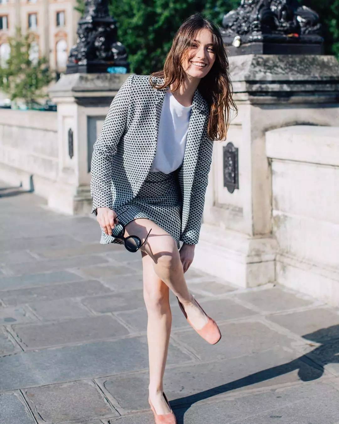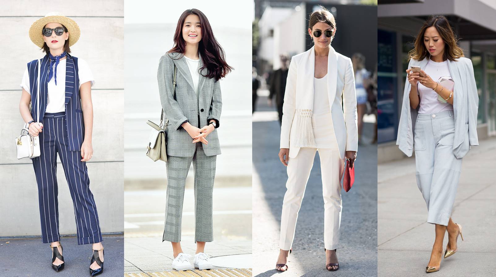 白T和西装,特别是80s复古西装混搭是今年流行的穿法,搭配一双高跟鞋和一个淑女范儿的包包来中和一下,简约大气!混搭小白鞋,弱化商务气息,休闲又时髦。