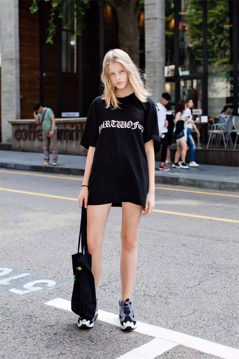 长Tee是随性T恤也是清爽连衣裙!用一条Oversized Tee玩下半身失踪,套上就有无敌大长腿,配球鞋配高跟看起来是恰到好处的性感,还有立马年轻5岁的效果!