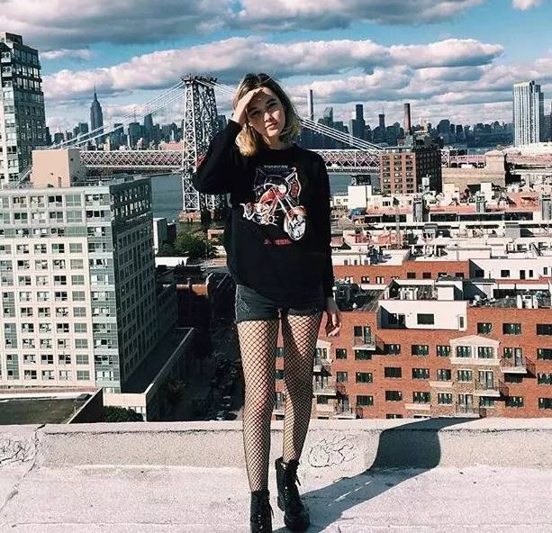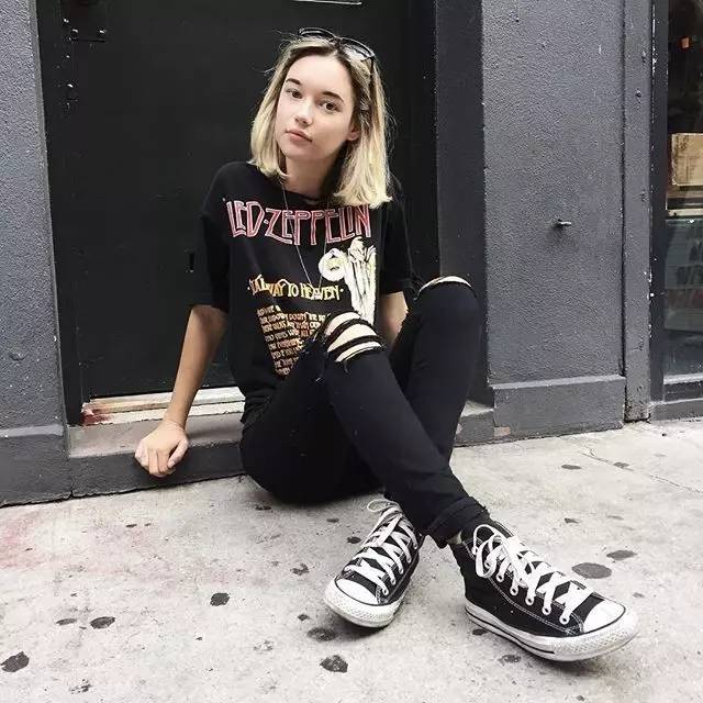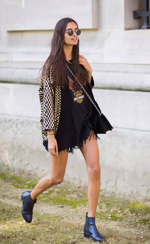 街头feel一定少不了深色Tee助攻,抢眼的图案自带帅气属性,大胆的girl可以尝试一下性感的渔网袜,时髦有个性,但一般人请不要轻易尝试,一不小心变俗气。