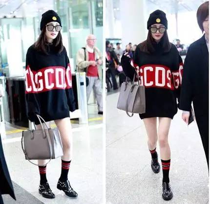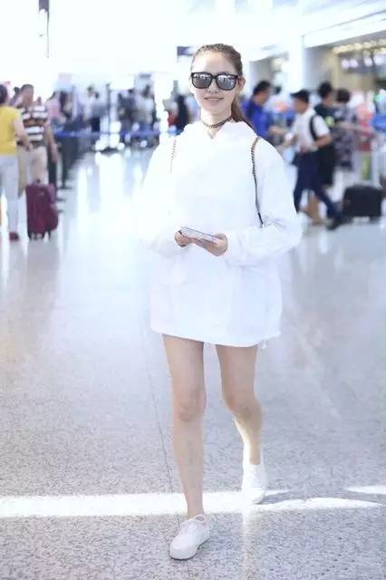 林允这一身搭配潮味儿爆棚,oversize卫衣和choker的搭配很新颖,但是最吸睛的莫过于一双大长腿,搭配普通小白鞋少女感扑面而来▼